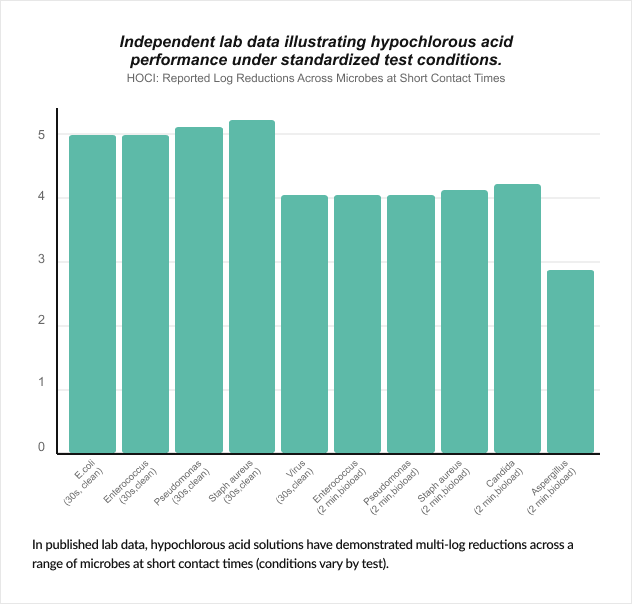 Hypochlorous acid (HOCl) is a powerful yet remarkably gentle solution for modern disease prevention and healing. As a broad-spectrum disinfectant, HOCl rapidly neutralizes viruses, bacteria, fungi, and other communicable pathogens—helping stop disease transmission in homes, hospitals, schools, and public spaces without toxic exposure. On the body, HOCl mirrors the molecule produced by the human immune system, making it safe and effective as a skin spray to calm inflammation and support conditions such as acne, rosacea, eczema, and compromised skin barriers. Clinically, it acts as an accelerated wound- and burn-healing agent—preventing infection, improving tissue regeneration, and supporting faster recovery without harming healthy cells. Beyond surfaces and skin, HOCl is also safe as a leave-on food disinfectant, reducing foodborne pathogens without chemical residue. Together, these applications position HOCl as a single, science-backed platform for preventing disease, protecting health, and promoting healing across daily life and critical environments.